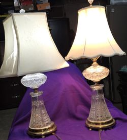Pair Of Vintage Bohemia Hand Cut Lead Crystal Table Lamps Made In Czechoslokaia 30 Inches Tall One Lamp Shade Needs Replaced.$95Hesperia, CA