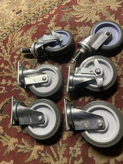 New Caster Kit Medium Duty 2-3/8”x3-5/8”Plate CasterGray Polyurethane 3 Top Brake and 3 Non- Brake Box. $45Spokane, WA