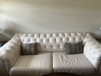White Leather Tufted Couch, Throw Pillows Included $200Lutz, FL