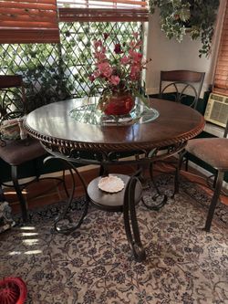 Beautiful High Table W/ 4 Upholstered High Chairs On Black Steel & Wood$500Henderson, NV