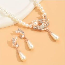 Rosegold White Pearl With Rhinestones Jewelry Set$25Fresno, CA