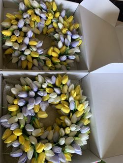 Brand New In Box-2 Beautiful Yellow & Lavender Tulip 💐 Door Wreath $30Bothell, WA