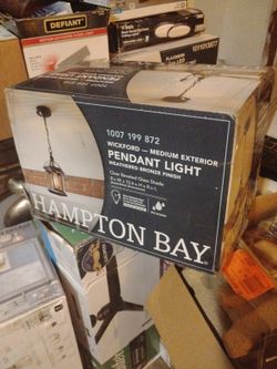 Hampton Bay Outdoor Light Wickford 13.6 in Weathered Bronze Pendant Outdoor Hanging Light Clear Beveled Glass$40Macclenny, FL