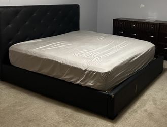 Black leather, Queen Size Bed Frame And Mattress$200Port Orchard, WA