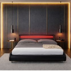 Upholstered QUEEN LED Bed Frame with Headboard, Modern Low Profile Platform Bed Black W-65$179Santa Ana, CA