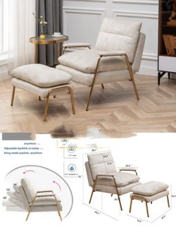 Modern Accent Recliner with Ottoman, Linen Fabric Armchair with Adjustable Backrest, Single Sofa Chair for Living Room Bedroom$220Fontana, CA