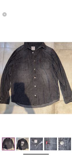 CLASSIC WESTERN LEVIS PATTERN SHIRT WITH PAINTED SKULL.$55Miami, FL