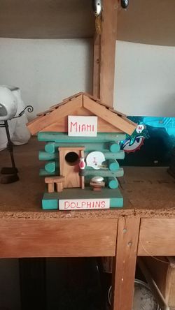 Miami Dolphins log cabin bird house$25West Palm Beach, FL