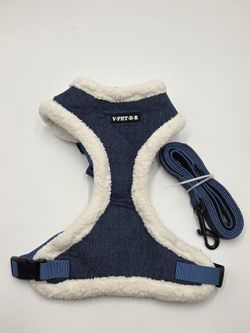 Denim & Plush Padded Dog Harness and Leash Set Size Large Blue Winter Vest$10San Antonio, TX