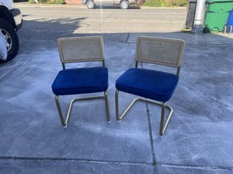 Set of 2 Modern Cane & Brass Cantilever Chairs – Blue Velvet Seat, Like New$140Seattle, WA