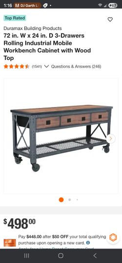 72 in. W x 24 in. D 3-Drawers Rolling Industrial Mobile Workbench Cabinet with Wood Top$300Ontario, CA