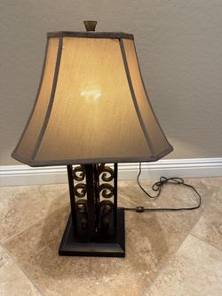 27”x8” brown gold lamp with beige lamp shade and metal base$20Phoenix, AZ