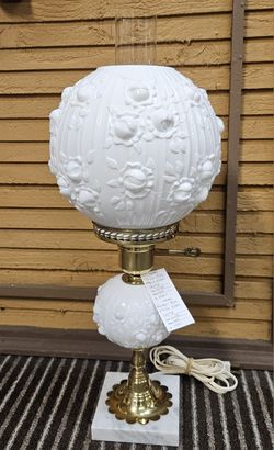 Fenton Cabbage Rose White Milk Glass Electric Student Table Lamp$100Snohomish, WA