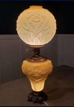 Rare Antique GWTW Honey Amber Satin Regal Iris Globe Hurricane Lamp$400Bothell, WA