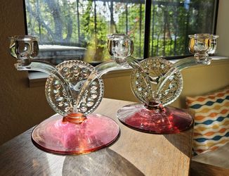 Set Of Tiffin Kings Crown Cranberry Flashed Candelabra Dual Candle Holders$49Snohomish, WA