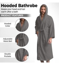 Men’s Hooded Bathrobe, 100% Cotton Terry Bathrobe, Spa Style Bath Robe, Absorbent Shower Robe, Lig$20Los Angeles, CA