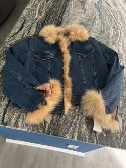 Dark Blue Denim Jacket With Fox Fur Arms And Neck And A Quilted lining. $40Pineville, NC