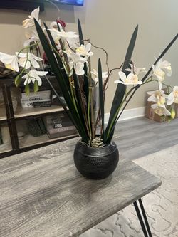 White orchid flower arrangement with a black textured bowl$15Austin, TX
