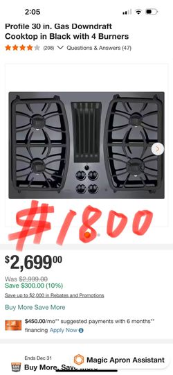 GE Profile 30 in. Gas Downdraft Cooktop in Black with 4 Burners$1,800Carson, CA
