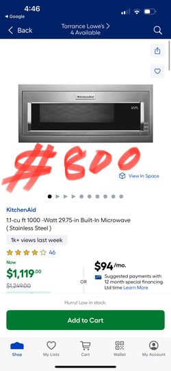 #EDO KitchenAid 1.1-cu ft 1000 -Watt 29.75-in Built-In Microwave (Stainless Steel)$800Carson, CA