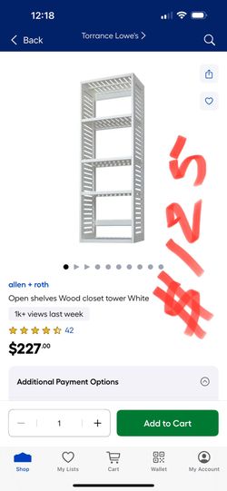 allen + roth Open shelves Wood closet tower Whitel Have 5 Total $125 Each$125Carson, CA