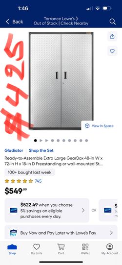 Gladiator Shop the Set Ready-to-Assemble Extra Large GearBox 48-in W x 72-in H x 18-in D Freestanding or wall-mounted St..$425Carson, CA