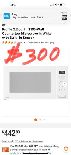 Ring Hay movimiento en tu Front GE Profile 2.2 cu. ft. 1100-Watt Countertop Microwave in White with Built -In Sensor$300Carson, CA