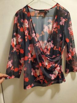 Tahari Floral Sheer Mesh Faux Wrap Long Sleeve Blouse Large$10Montclair, CA