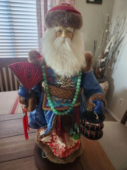 24" Chinese Santa Claus Figurine Handmade w/Jade, Lucky Crickets & Fan $30Queen Creek, AZ