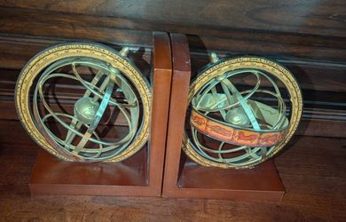 Pair of vintage(1970s) Italian brass and wood armillary sphere and globe bookends$55Georgetown, TX