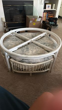 Vintage Wicker Coffee Table With Pull Out Stools $80San Diego, CA