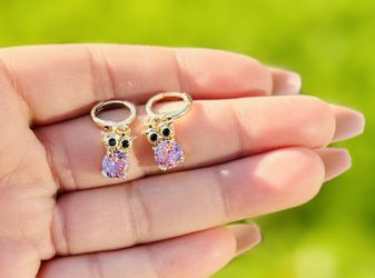 Gold Earrings- Owl Earrings - Pink Diamonds $12Brea, CA