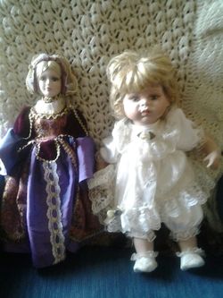 Two porcelain dolls. The baby doll is a collectors choice styled by Dandee$15Lakewood, WA