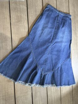 CHICOS Denim Maxi Skirt Size 0 Flared Mermaid Style Frayed Hem Boho Western$30Peoria, AZ