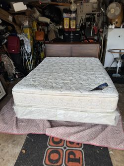 Used queen size pillow-top mattress and box spring set with a wooden headboard. $225Clermont, FL