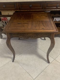 Vintage HENRENDON End Table CARVED DRAWER FRONT CABRIOLE LEGS PARQUET TOP WALNUT$300Fort Lauderdale, FL