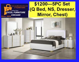 🌺 FREE DELIVERY 🌺Brand New 5PC Queen Size Bedroom Set ( Queen Bed, NS, Dresser, Mirror, Chest)$1,200Schaumburg, IL