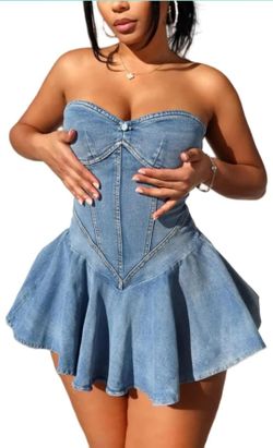 Women's Strapless Denim Dress Sexy Off Shoulder Corset Tube Pleated A Line Summer Mini Jean Dresses Clubwear$45Los Angeles, CA