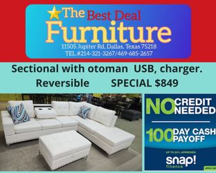 Sectional With Ottoman, Usb. Reversible $50 Down $50Dallas, TX