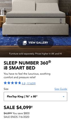 Sleep Number Flextop King I8 Mattress, Flexfit 2 Smart Base + Accessories$2,400Heath, OH