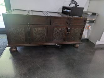 ANTIQUE OAK CARVED SLIDING TOP CHEST SOLID WOOD $150Pembroke Pines, FL