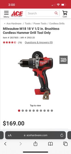 Milwaukee M18 18 V 1/2 in. Brushless Cordless Hammer Drill Tool Only$90Tampa, FL