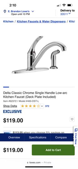 Delta Classic Chrome Single Handle Low-arc Kitchen Faucet (Deck Plate Included)$80Tampa, FL