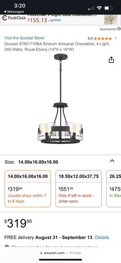 Quoizel STM1716BA Stratum Artisanal Chandelier, 4-Light, 240 Watts, Royal Ebony (14"H x 16"W)$180Tampa, FL