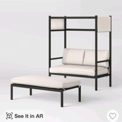 2pc Ryegate 4' Outdoor Mini Patio Lounge Set Daybed with Ottoman Weathered Teak - Threshold$300Fullerton, CA