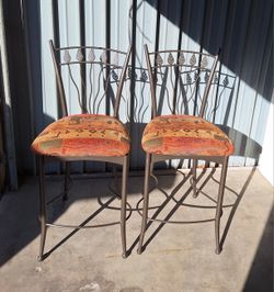 Pair of leaf back bar stools with patterned velour seats. $65Phoenix, AZ