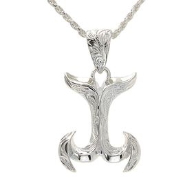 Sterling Silver Hawaiian Scroll Whale Tail Fish Hook Pendant $85Honolulu, HI