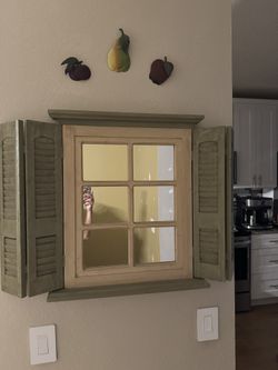 decorative wooden mirror designed to look like a window with open shutters.$60Town 'n' Country, FL