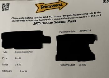 Kennywood Season Pass$40Penn Hills, PA