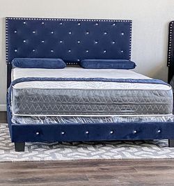 BRAND NEW KING SIZE BLUE BED FRAME WITH NEW MATTRESS SET/FAST DELIVERY$399Mesquite, TX